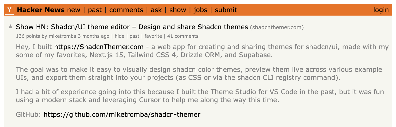 136 points, 41 comments, and a bunch of themes created by the community that first week.