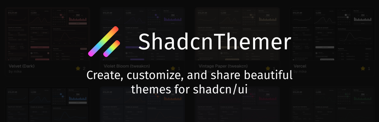 I'd already built a theme editor for VS Code that grew into a whole community — thousands of developers creating and sharing editor themes. When shadcn/ui took over the React ecosystem, the same gap was staring me in the face: every shadcn app shipped with identical styling. Same zinc grays, same default border radius, same everything. The components were great, but customizing them meant manually editing CSS variables and guessing at color combinations until something looked decent.